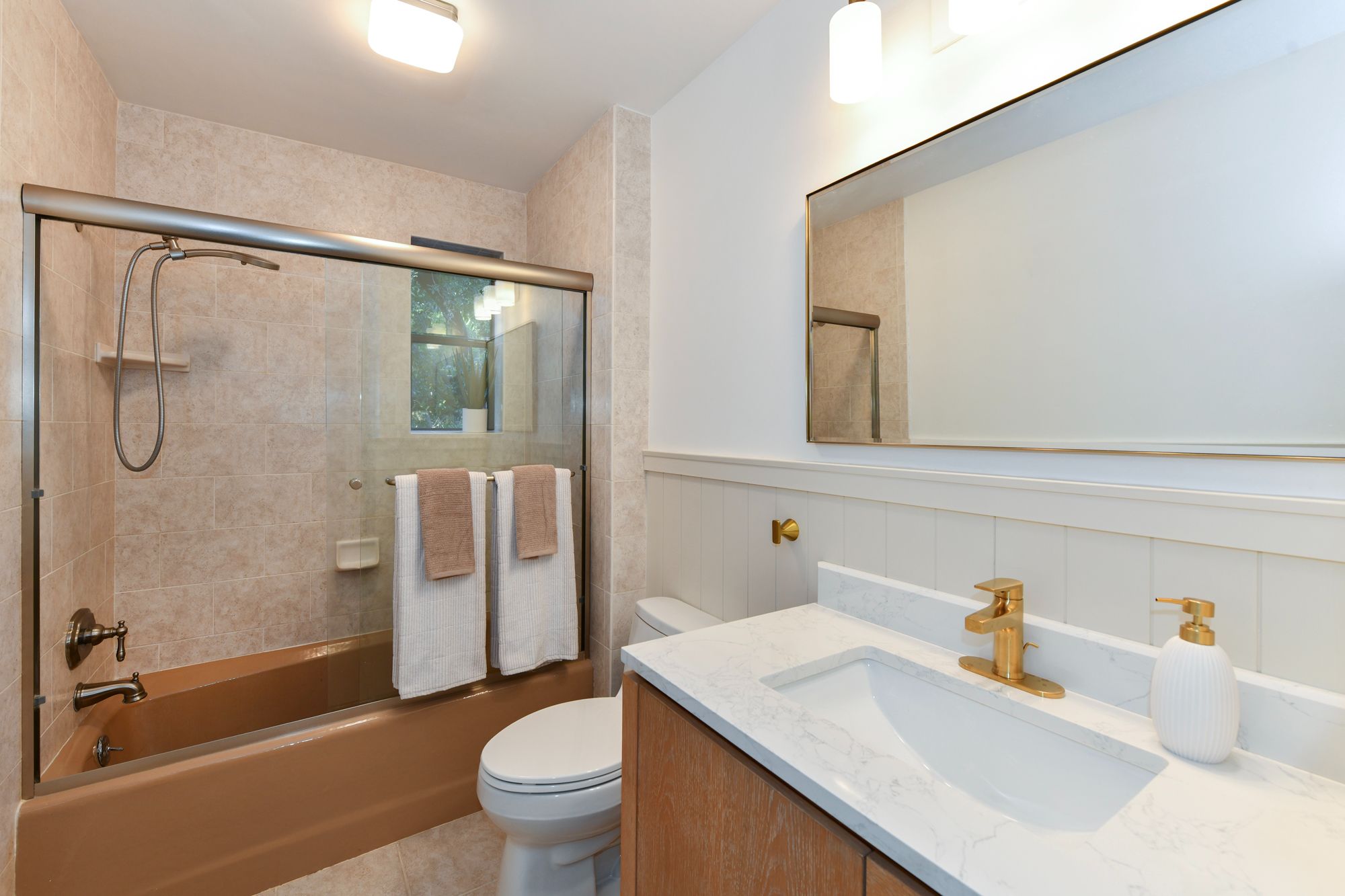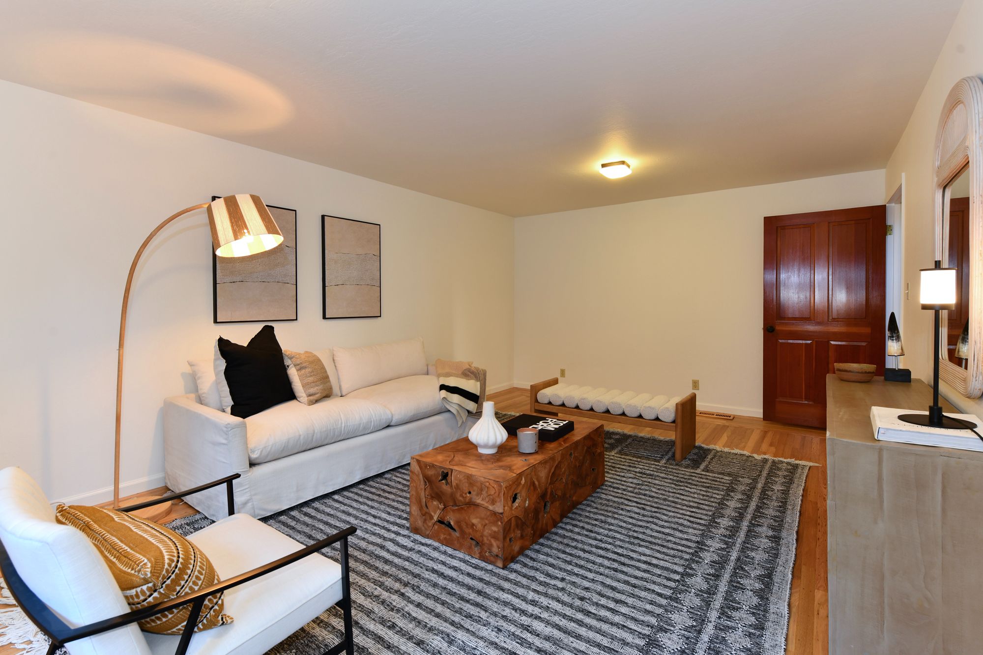 The oversized primary suite is bright and airy, with a vaulted ceiling, walk-in closet, and remodeled bathroom. A great room with private deck and separate entrance offers exciting customization options including a fourth bedroom or private office. Additional amenities include a combo laundry/storage mudroom, dual-zone HVAC and two-car garage.